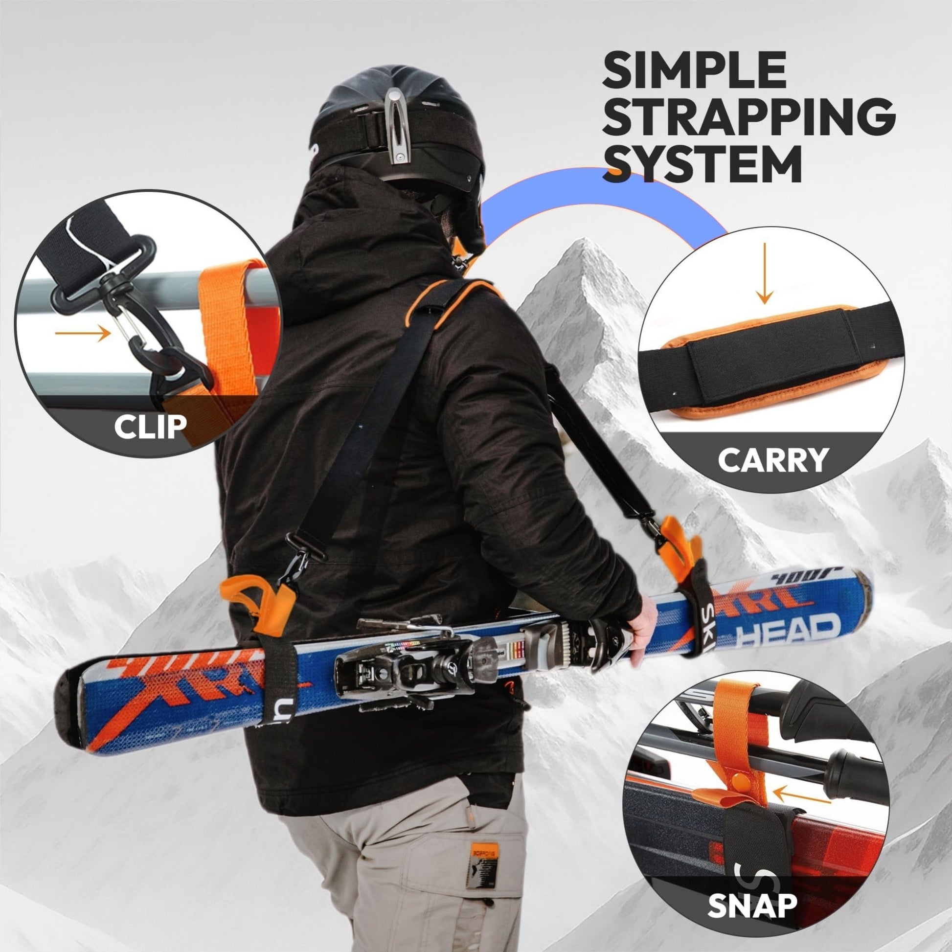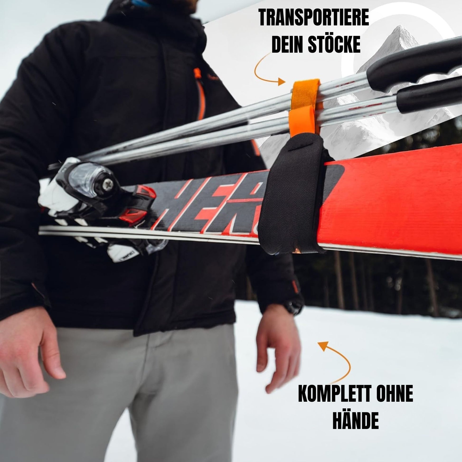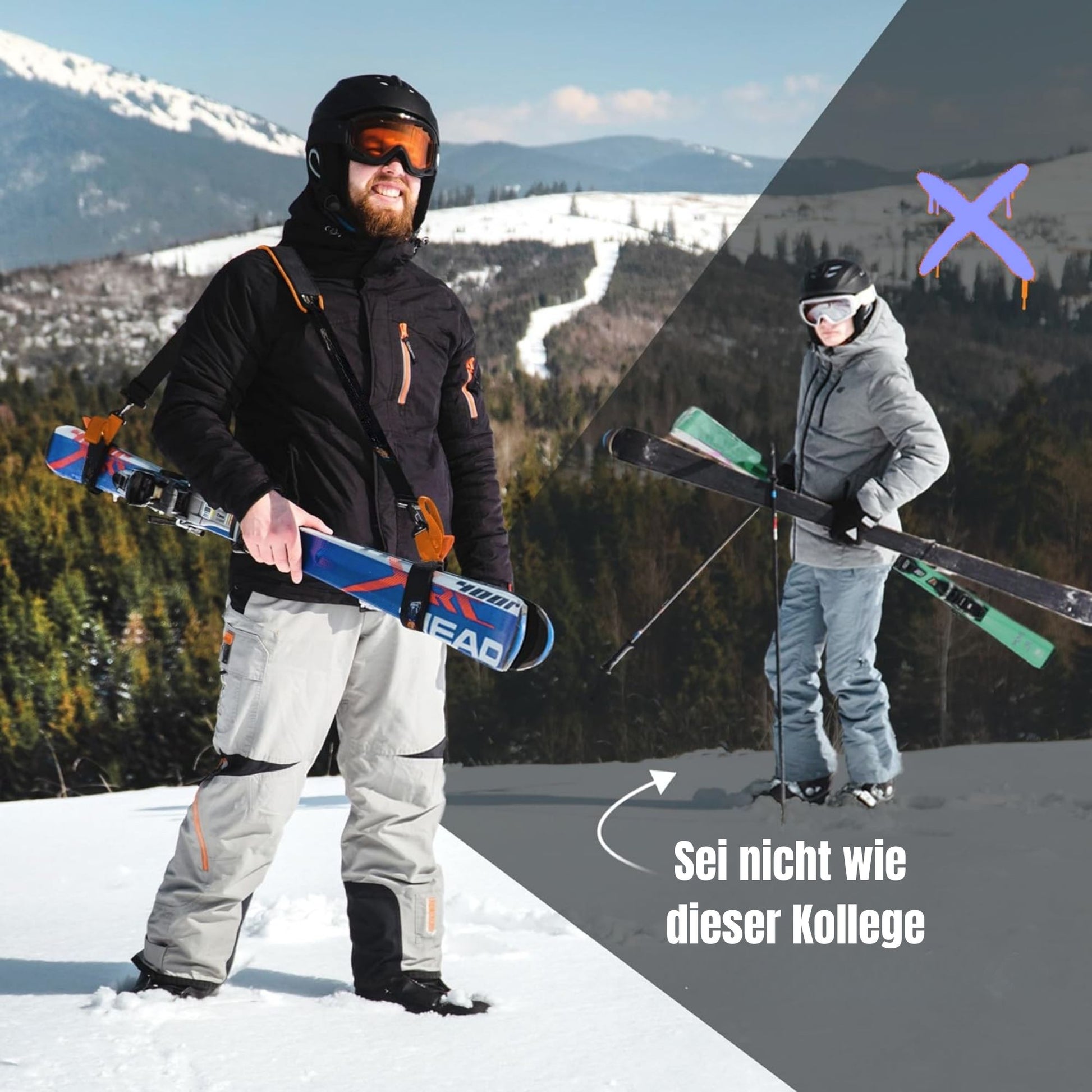 Unser Skitragegurt sorgt dafür, dass du deine Ski mühelos und ergonomisch transportierst – ganz ohne Verrutschen oder schmerzende Schultern. Praktisch, komfortabel und immer bereit für den nächsten Schwung.